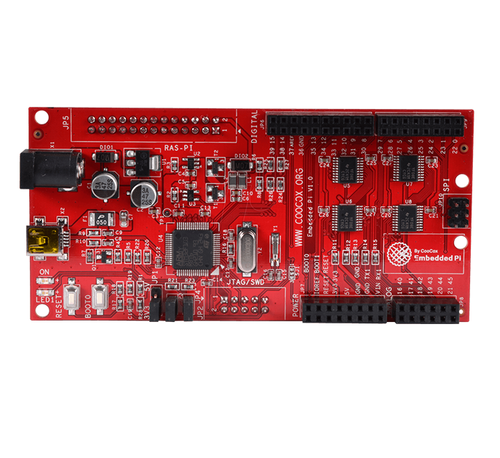 Form factor compatible with Arduino shields Enhances the control capability of Raspberry Pi. A complete set of FREE CooCox ARM development tool platform for ARM development Embedded Pi board, USB 2.0 cable, Two flat cables, Four rubber columns, Technical documents. Embedded Design & Development Sensing & Instrumentation Motor Drive & Control Hobby & Hardware Hacking Communications & Networking