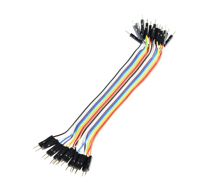 These Male/Male Jumper Wires are handy for making wire harnesses or jumpering between headers on PCB's. These premium jumper wires are 6" (150mm) long and come in a 'strip' of 20 (2 pieces of each of ten rainbow colors). They have 0.1" male header contacts on either end and fit cleanly next to each other on standard-pitch 0.1" (2.54mm) header. The best part is they come in a 20-pin ribbon cable. You can always pull the ribbon wires off to make individual jumpers, or keep them together to make neatly organized wire harnesses.
