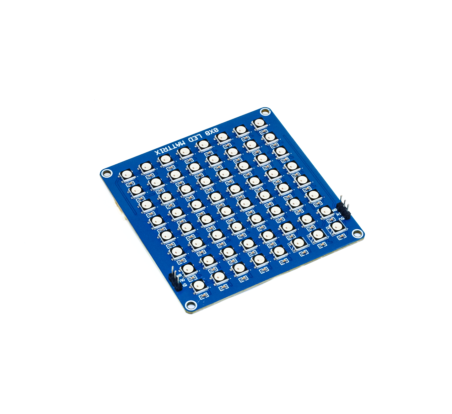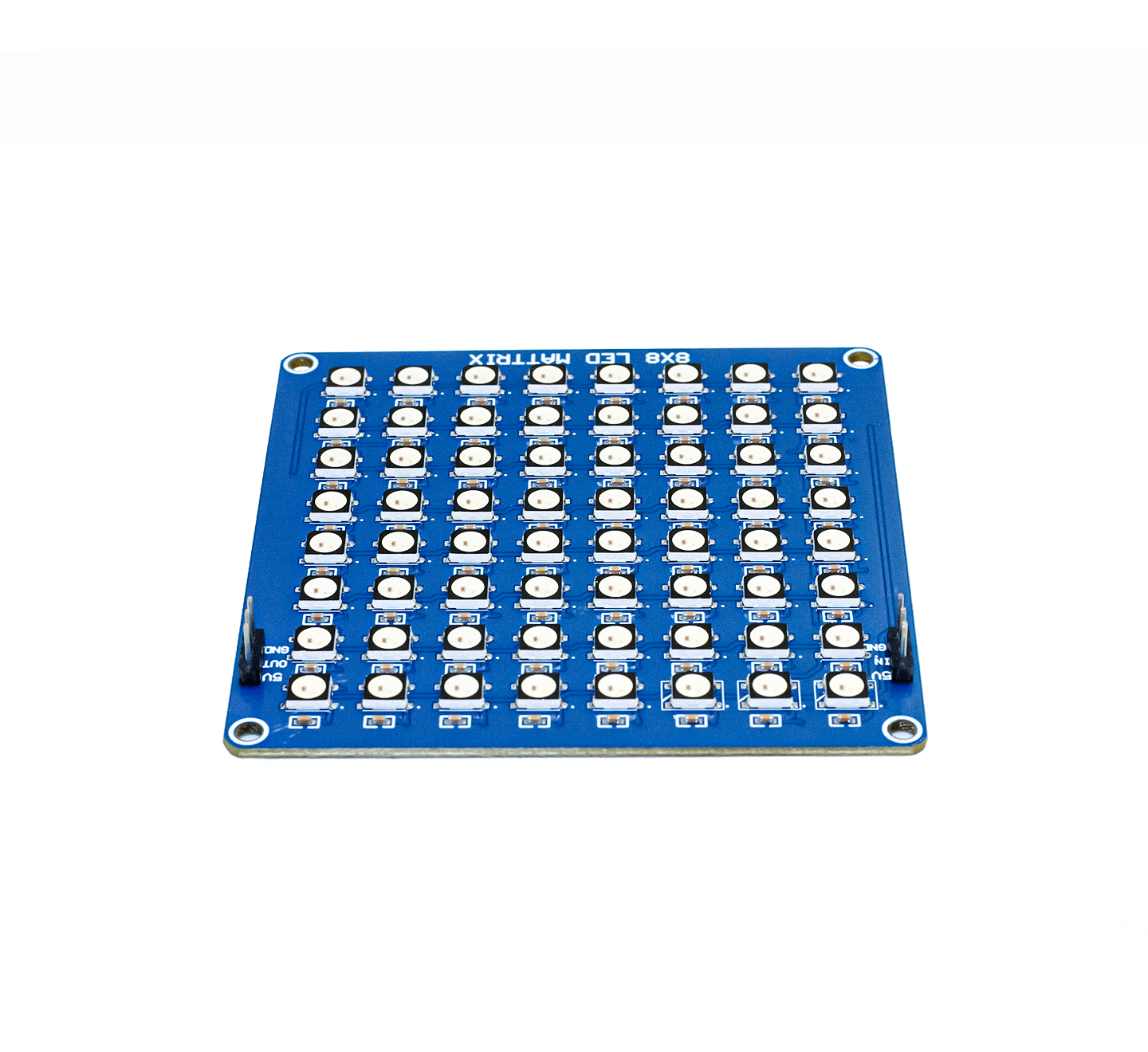 The WS2812B LED, which is used in the 8x8 LED matrix board, is an intelligent control LED light source that control circuit and RGB chip are both built into a package of 5050 components. Its inner components include a signal-reshaping amplifier driving circuit and an intelligent digital port data latch. Include a precise internal oscillator and a 12V voltage programmable constant-current control component to further guarantee the consistency of the pixel point light color height.