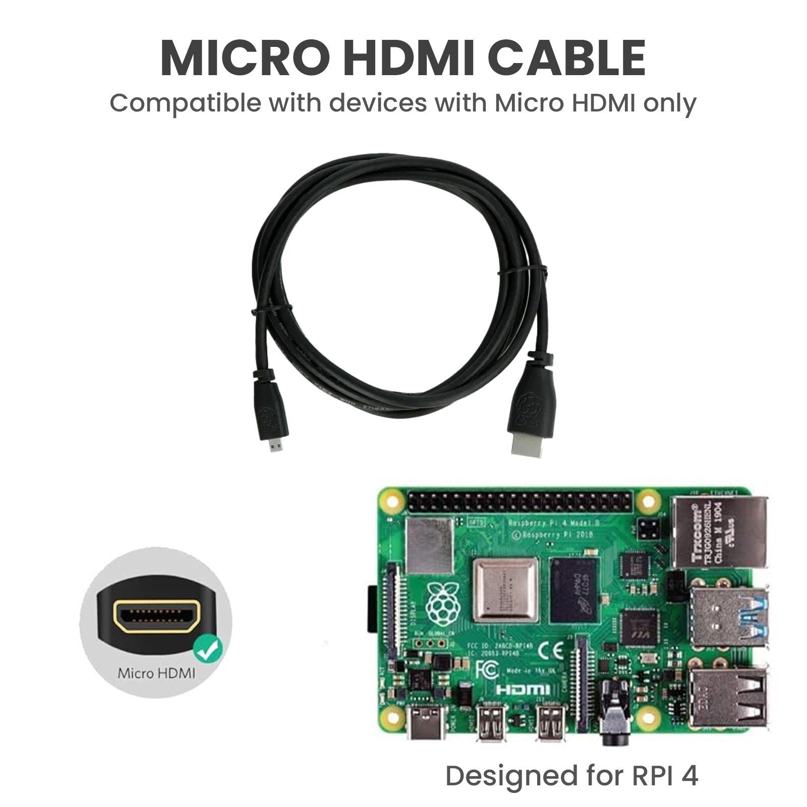 - Raspberry Pi Micro HDMI to HDMI Cable (2M BLACK)