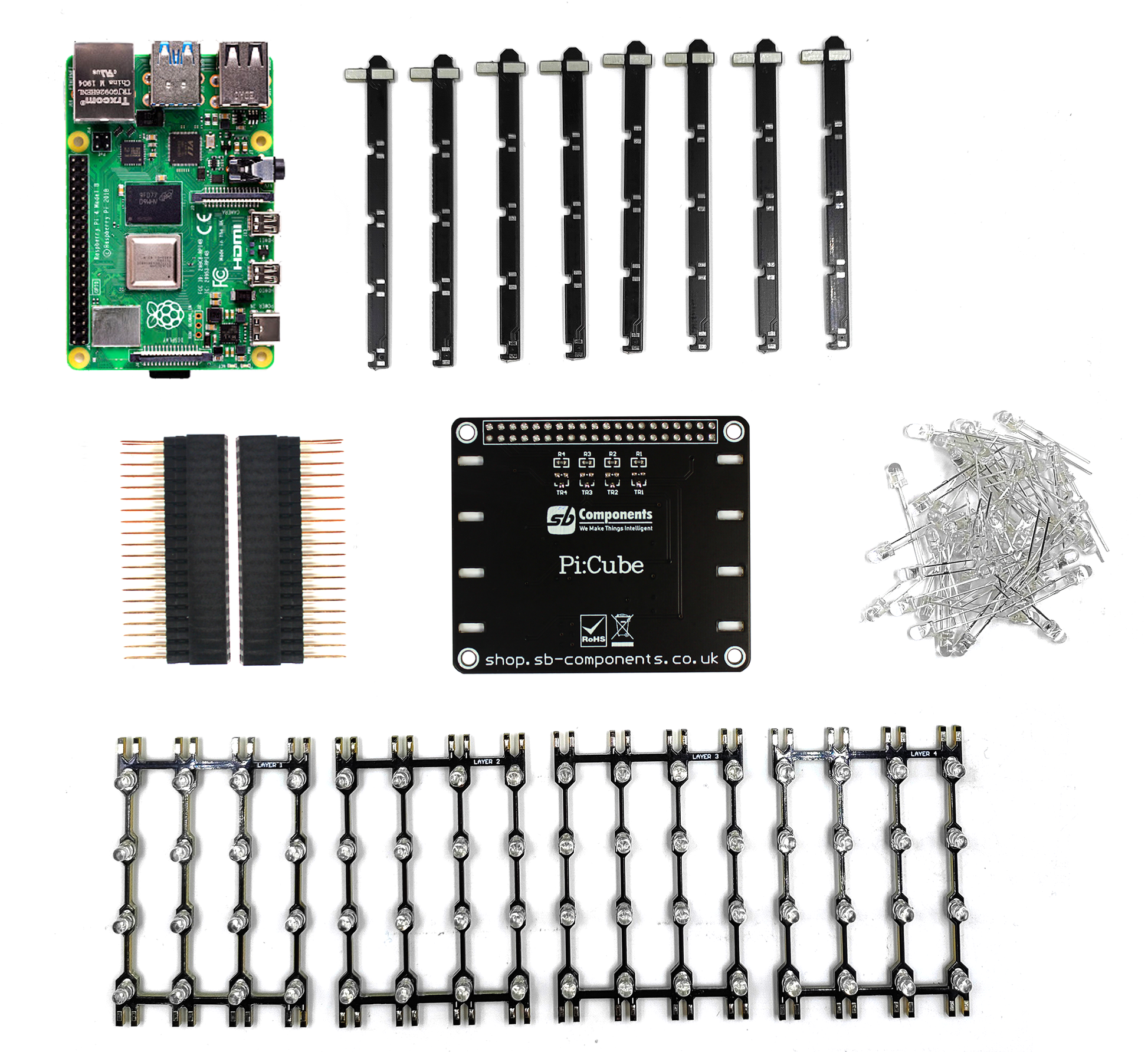 PiCube is a 4x4x4 LED cube HAT with a 5V DC operating voltage. PiCube, a monochromatic( Red, Blue, Green) LED with 64, is the latest product in the range of technologically advanced devices of SB Components. It is designed to perform incandescent operations with low energy consumption, robust outlook, and easy installation that make people/kids/users learn the effects of LED lights with different patterns of colors via the combination of software and hardware i.e. Raspberry Pi.