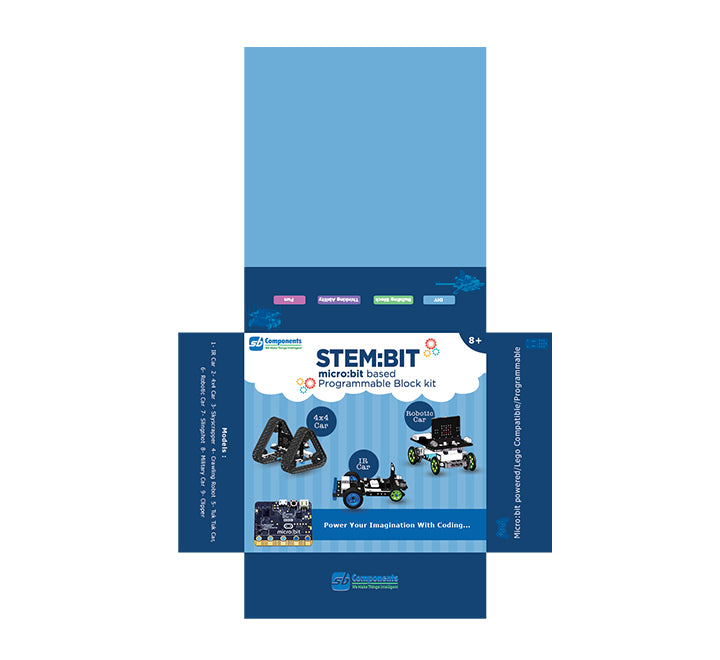 Stem:Bit is a micro bit starter kit easy to assemble and design codes about learning how to program the moves of different structures using the micro:bit. Using Stem:Bit you will learn programming, electronics, robotics, and many more.