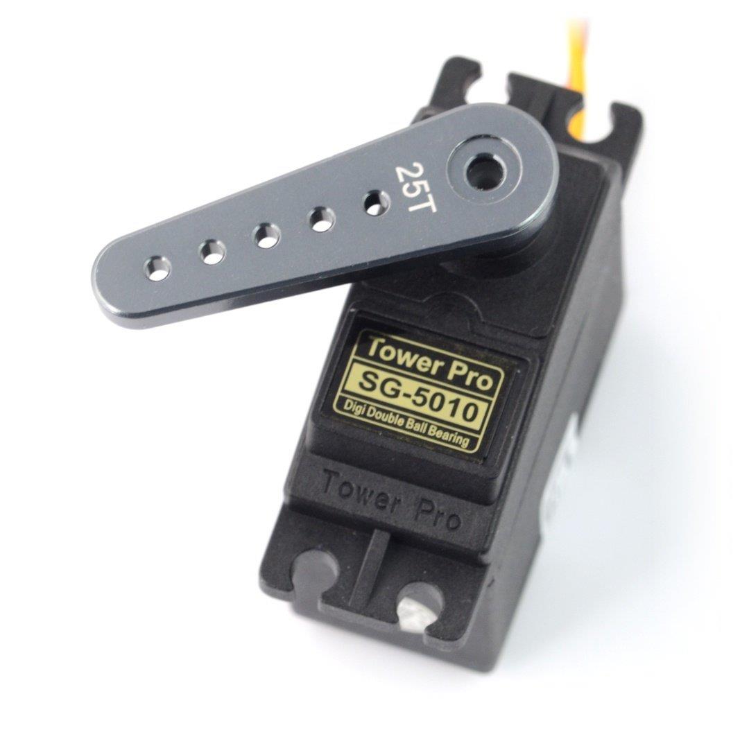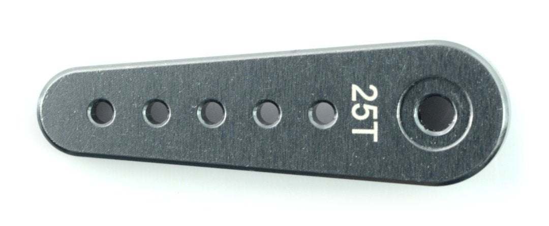 Aluminium horn made by company Feetech, length of 4.2 cm and a diameter of the mounting hole is 7 mm. It has a shoulder in grey. It works with FS6530M servo.