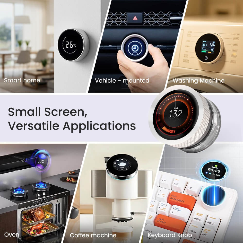 - Interaction mode: supports knob input, the knob supports clockwise, counterclockwise rotation and full press operation, and can adjust volume, brightness, etc.