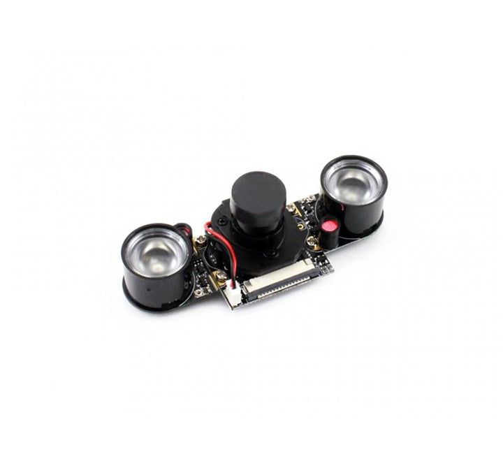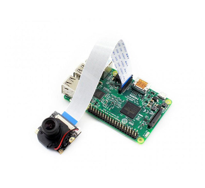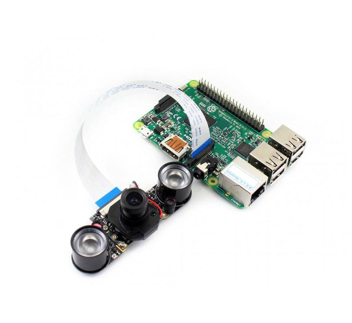 This Raspberry Pi IR-CUT Night Vision Camera plugs directly into the CSI connector on the Raspberry Pi, and features two high-intensity Infrared LED spotlights for night time recording! The IR LED's are powered directly from the CSI port, and are capable of lighting an area at a distance of up to 8m! In testing, the best images were captured at a distance of 3m to 5m. The camera also features an adjustable 3.6mm focal length and a 75.7-degree viewing angle.