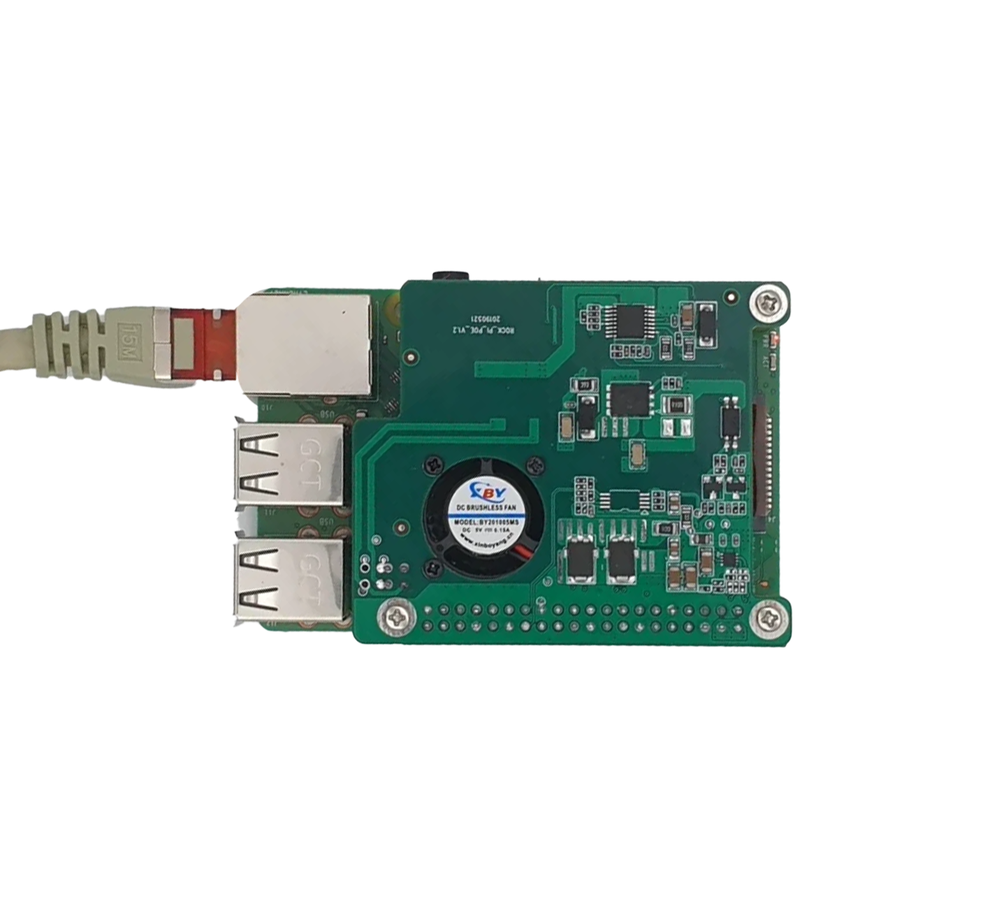The PoE HAT includes a compact PWM-controlled brushless fan that provides cooling to your board and its CPU when operating.