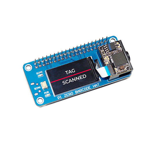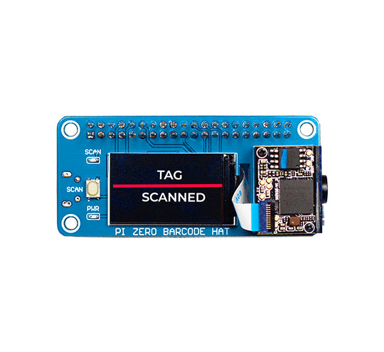The Zero Barcode HAT is a robust and compact barcode scanner board based on the Raspberry Pi zero form factor that includes a DE2120 scanner module, buzzer, 1.14" LCD screen, and a micro-USB connector. It is designed to scan 20 distinct barcode symbologies (both 1D and 2D) with an on-board camera and image processing to recognize and decode everything from UPC codes to QR codes. The module also has two LEDs: one for lighting and one to project the red line seen on laser-based scanners.