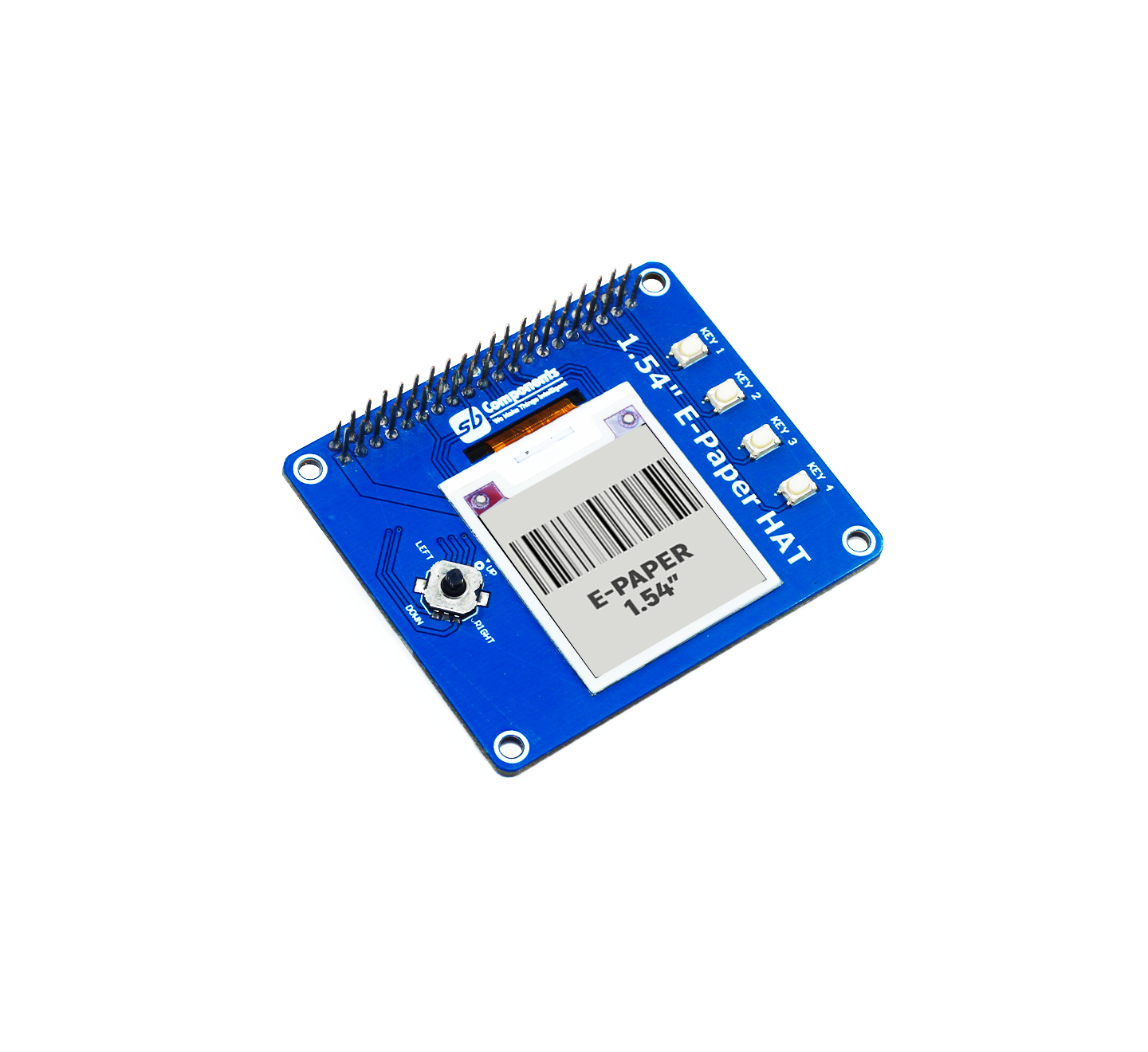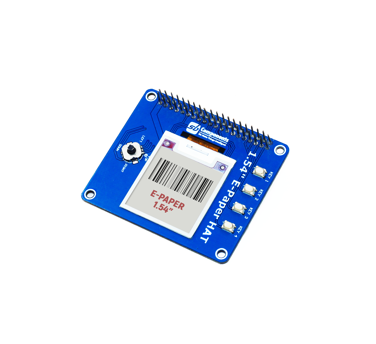 E-Paper HAT was designed to provide users with an E-Ink display. The product has a 1.54-inch AMEPD display with a 200x200 resolution. It also supports both SPI interface and it has 4 programmable buttons and 5-axis joystick so that user can customize the what to feature. Users can enjoy the "Glare-free" display which has low power consumption and is ideal for outdoor use.