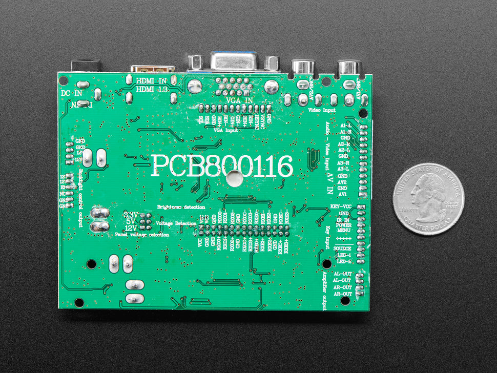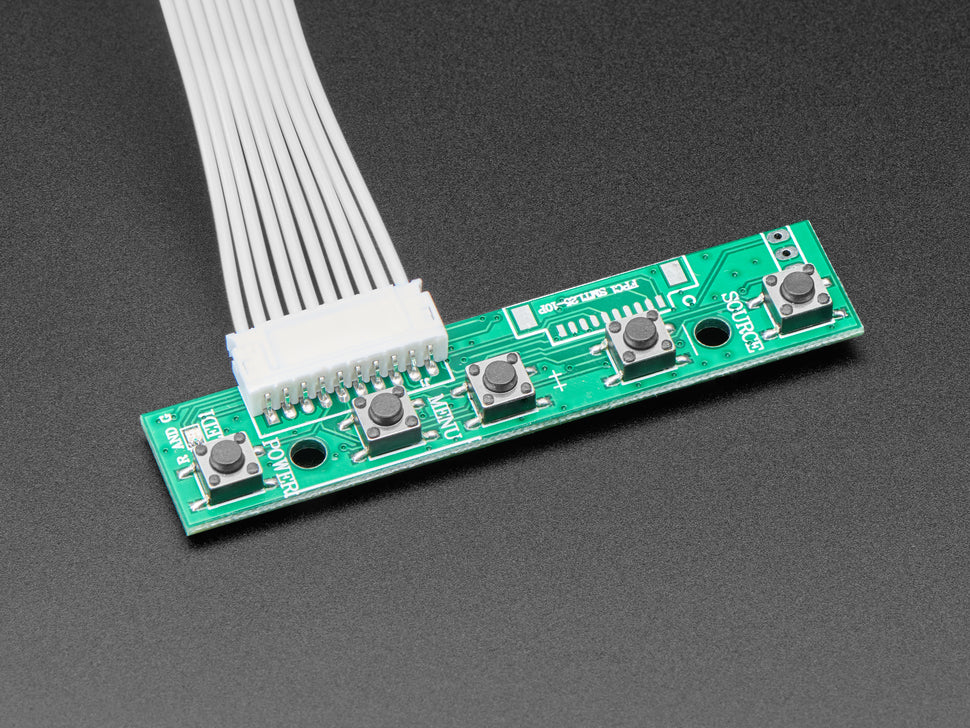 Control buttons on a wired PCB allow easy access to a menu for adjusting brightness, color, and contrast. The display auto-detects input sources but also allows manual selection.