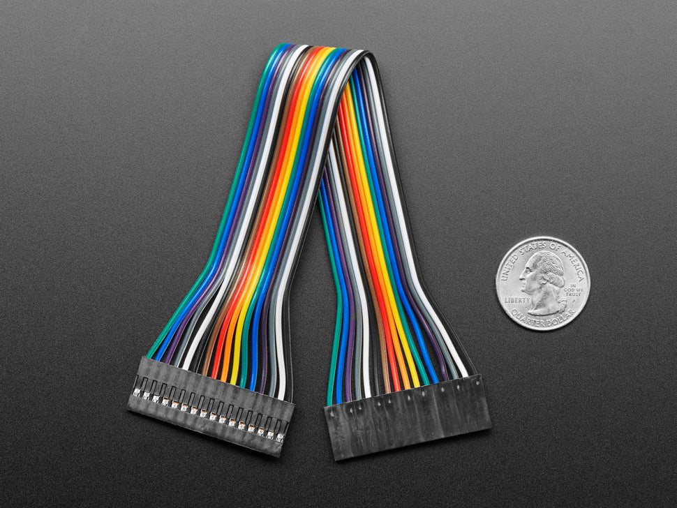 These jumper cables are perfect for connecting common 0.1" header devices together. They provide a solid cable for connecting any 2.54mm / 0.1" pitch boards such as perf-board, breadboards, and breakouts. This 16-pin jumper cable is 20cm (about 8 inches) long and does not have a latch or key, so care should be taken with orientation as it can be flipped.