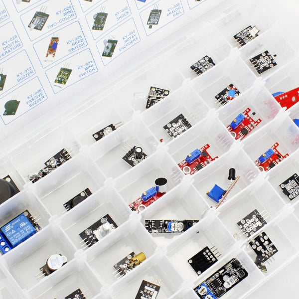 Dive headfirst into the exciting world of electronics with our 37-in-1 Sensors Module Kit for Arduino! Whether you're a curious beginner taking your first steps or a seasoned maker looking for a versatile toolkit, this collection is your all-access pass to limitless creativity. Stop searching for individual components and start building your dream projects today with this complete Arduino sensor starter kit.
