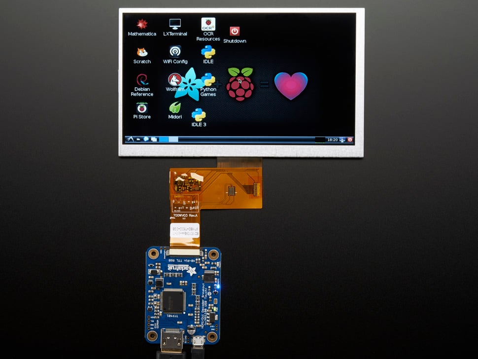 For ease of use, consider pairing this display with the Adafruit RA8875 driver board, which handles video RAM and timing requirements, compatible with many microcontrollers including Arduino. For HDMI or DVI output control, the Adafruit TFP401 driver board is suitable.