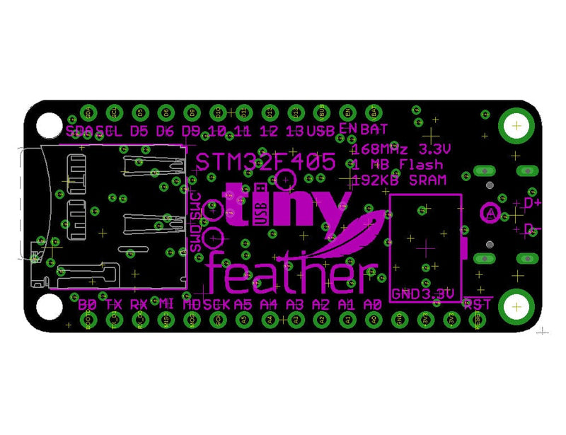 ST takes flight in this Feather board. The new STM32F405 Feather (video) that we designed runs CircuitPython at a blistering 168MHz – our fastest CircuitPython board ever! We put a STEMMA QT / Qwiic port on the end, so you can really easily plug and play I2C sensors.