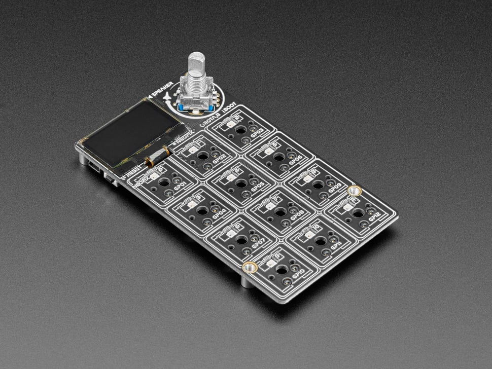 Strap yourself in, we're launching in T-minus 10 seconds...Destination? A new Class M planet called MACROPAD! M here stands for Microcontroller because this 3x4 keyboard controller features the newest technology from the Raspberry Pi sector: say hello to the RP2040. It's a speedy little microcontroller with lots of GPIO pins and 64 times more RAM than the Apollo Guidance Computer. We added 8 MB of flash memory for plenty of storage.