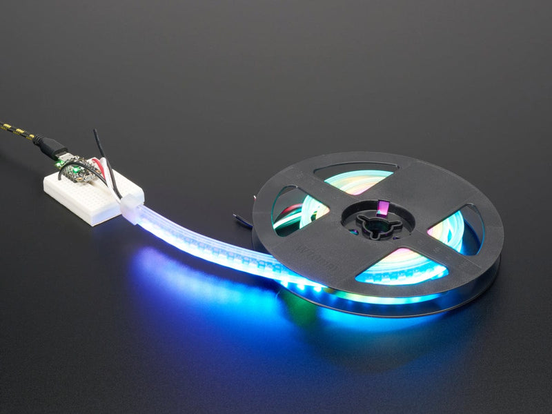 These strips come in 1-meter reels with a 2-pin JST SM connector on each end. To wire up these strips we suggest picking up some JST SM plug and receptacle cables for the signal wires. For the power wires, you will also probably want a 2.1mm DC jack to wire in, so you can connect one of our 5V wall adapters to power it.