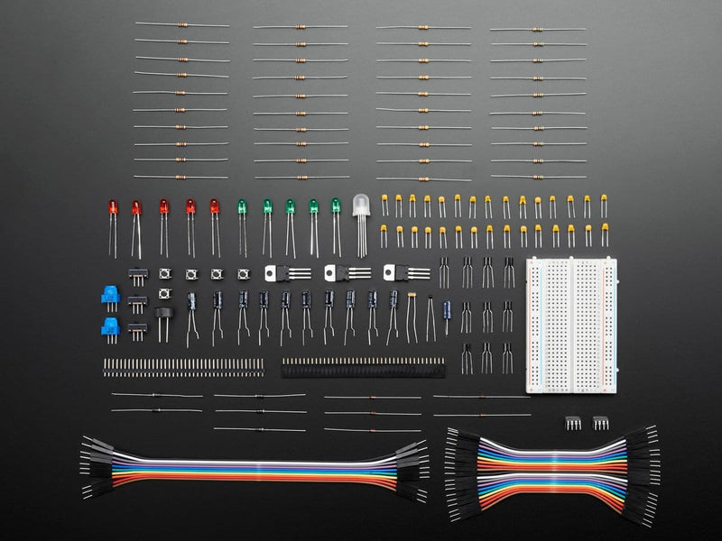 LEDs and passives and transistors and switches and op-amps oh my! The Adafruit Parts Pal is the ultimate companion for an entry-level maker learning electronics. This kit is your friend whenever you need to build up a project. It contains many of our most popular components and prototyping parts all wrapped up in one parts pack so you can open up and dig right in.