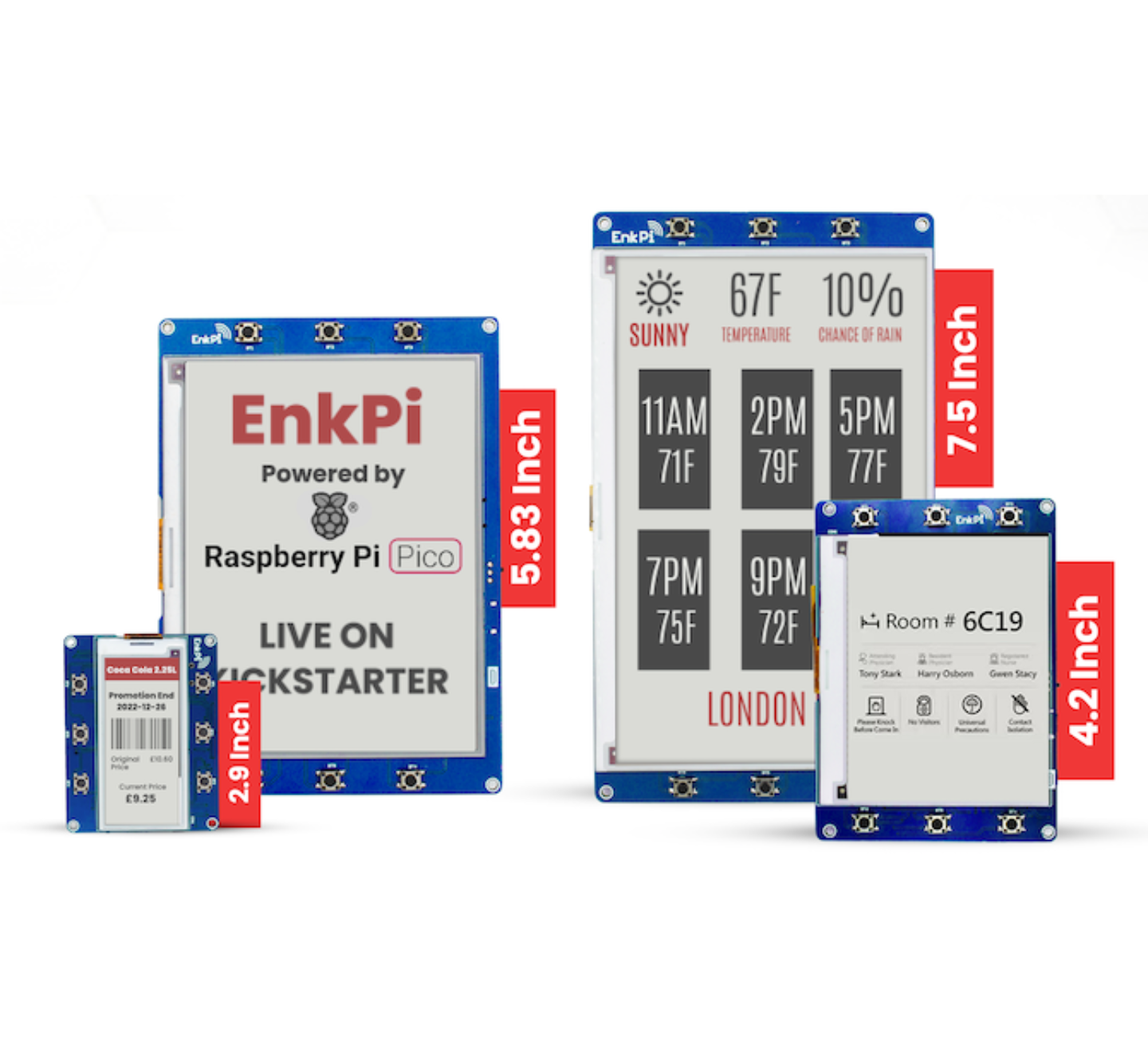 The EnkPi is available in 2.9", 4.2", 5.83", and 7.5" E-paper sizes.