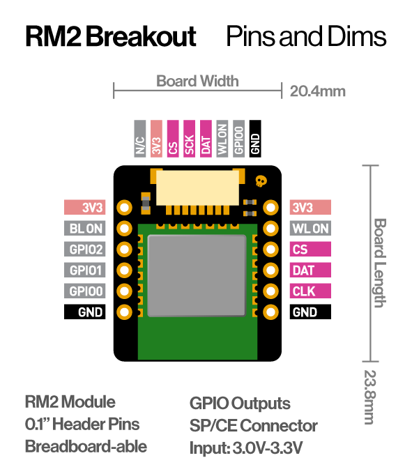 Add 2.4GHz wireless and Bluetooth functionality to your projects with the RM2 Wireless & Bluetooth Breakout featuring Raspberry Pi's RM2 module (CYW43439).