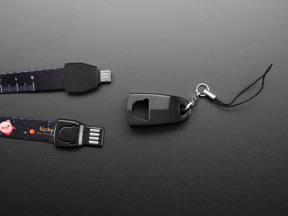 At first glance, this lanyard may appear to be merely a cute, woven fabric, space bear-themed lanyard, but to quote one of our favorite game shows, "Um, Actually" it is a USB-A to USB Micro-B Cable that you can use to power and sync your gadgets. Perfect for pairing with your electronic badge from a hackathon or conference.