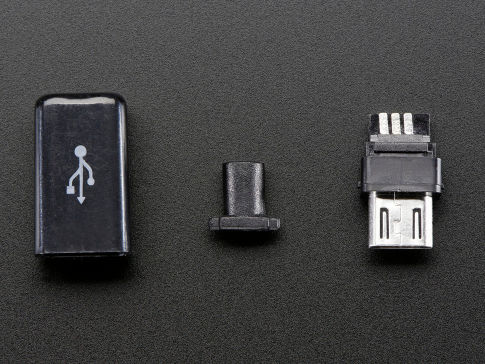 Make your own USB connections without slicing apart a USB cable and soldering those thin wires inside. This is the 'slim' version of the DIY MicroB Male connector. It offers a more elegant design that press-fits into the overmolding for a modern look. Ideal for DIY USB projects requiring MicroB male connectors.